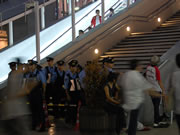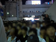演説するローゼン閣下(左) 封鎖されたUDXへの階段(右)