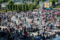 通路の混雑は相変わらず。ただしコスプレ広場は導線ができて入場はしやすくなった。ただし出口がバスの降車場と重なるため、昼過ぎまでは広場から出るのは非常に困難。2日目の入場者数は約18万人だったそうです。