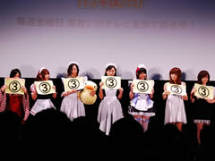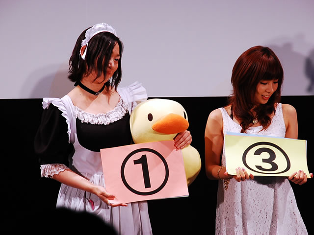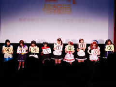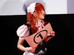 予選1組目はアイドルの白岩さん、駒宮さんにコスチャ、シャッツキステ、ひよこ家、ガーデンフェアリー、和カフェの7人の対戦。メイドさんたちだけでなくアイドルの2人も快調に正解を続け、最後はさんとひよこ家のひなさんの一騎打ちの末、ひよこ家ひなさんが勝ち残った。