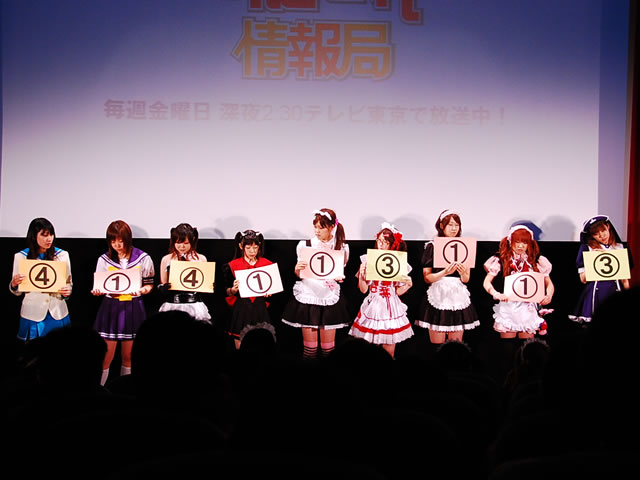 模擬試験は、MCにお笑いタレントにアメリカザリガニの2人と大網亜矢乃さんの計3人で進行。14店舗のメイド店の代表とアイドルの白岩英里子さん、駒宮美都季さんが優勝のアニメ検定5級仮認定を目指して競うというモノ。