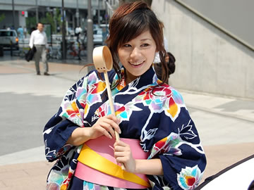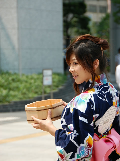 2007年のうち水っ娘のイメージガールの初音りおさんによる、うち水っ娘のポスタ撮影と正しい水の打ち方のビデオ撮影が先日秋葉原にて行われました。この日の初音りおさんは、お母さんが若いときから着ていたという浴衣姿で登場。この撮影で撮った浴衣姿の打ち水っ娘のポスターがアキバでまもなく見られそう。ファンによるポスタ争奪戦も予想される。それくらいキュート!