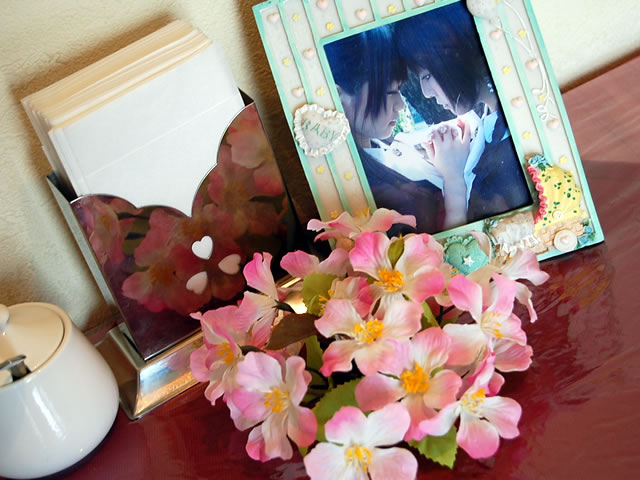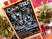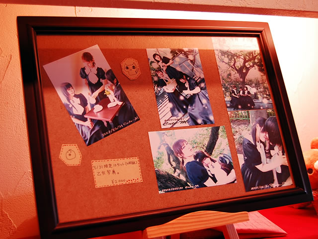 内装・ディスプレイ、メニューまでメイドさんの手作りで、店内のいたるところに、お茶会のイメージ写真やメイドさんの描いた絵・イラストが飾られている。