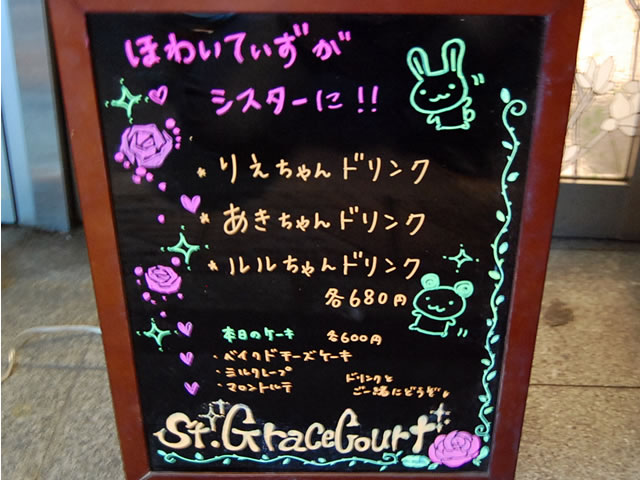 最後にグレースコートのシスターとほわいてぃずの3人で記念撮影。24日のイベントでは今回参加できなかった、ほわいてぃずのもう1人のメンバー中山エリサさん、そして秋葉原でおなじみの初音りおさんがゲスト出演して、ライブでは珍しく写真撮影OKなイベントとなるようです。