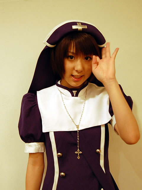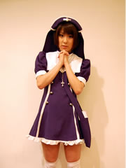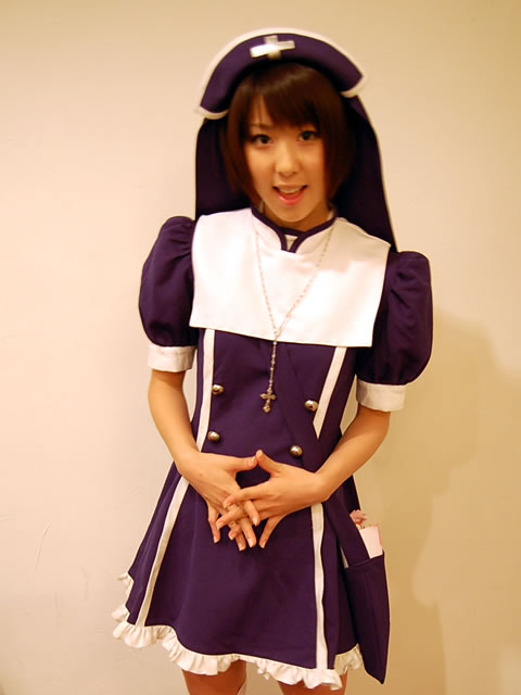 21日、秋葉原のシスターカフェ「St.グレースコート」にてレースクイーン&アイドルユニット「ほわいてぃず」の1日体験シスターのイベントが開催されました。このイベントでは「ほわいてぃず」のメンバーから鵜飼りえさん、松星りえさん、新人のルルさんがシスター姿となり、この日のための特製ドリンクの給仕をおこなっています。