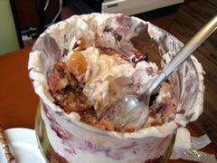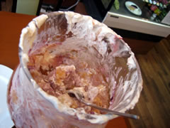 時間の都合もあったのですが、30分でギブアップとなってしまいました。残りは1/4程度。難敵は量よりも甘さに耐えられるか?今回はチーズ系のケーキなどが入っていた分さらにツラく感じました。機会がありましたらリベンジしたいと思います。