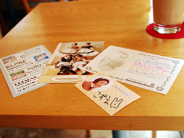 メイドさんは4名。いずれもメイドカフェの経験は初めてとのこと。撮影会のモデルなどをやられているそうで、店内にはデジタル写真集が販売されていました。そして通常のメイドカフェとの違いは、そのモデルのファンがお客さんとして多かったのか、カメラを持ったお客さんが目立ち「HAPPY TIME」という5分500円のメニューで好きなメイドさんを撮影できるというメニューが人気で、滞在していた時間はほぼひっきりなしに撮影会状態でした。このメニューはメイドさんとのおしゃべりもできるそうですが、撮影が圧倒的なシェア。