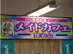 22日、秋葉原のヤマギワソフト・アニメ館にて秋葉原の人気メイドカフェ7店舗のイメージDVD「メイドカフェ発表会-cafe1-」の発売記念イベントが開催されました。この日は中央通りの歩行者天国でも告知をしていたようで、アキバBlogによるとバニーガールのお姉さんがチラシを配布していたとのこと。今回のDVDは特にいわゆる正統派と呼ばれるメイドカフェが多く、バニーガールはむしろ正統派とのギャップと楽しむ、と捕らえることができます。