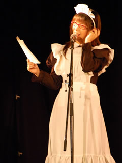 舞台「御主人様刑事」は朗読劇で、キャストに声優の小倉結衣さん、福井智美さんを中心に、ROBO太、ハニハニ、ファンシーキャット、Princeのメイドさんや王子さまたちが出演するという賑やかなものでした。企画・脚本・演出・監督はROBO太の長谷川店長。