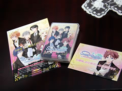 執事さんはひざ待ついてゲームの説明、ゲームに勝つとトランプなどオリジナルグッズをもらうことができる。
