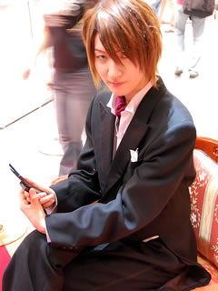 入り口で出迎えてくれた執事さんと、ゲームをしてくれた執事さん。メイドカフェなどのお店では同じイスにスタッフが同席することはありえないが、今回はイベントということもあり、座ってのプレイもゲームを楽しむこともできた。