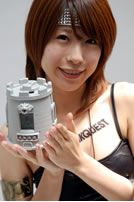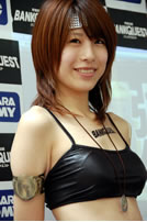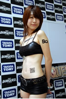 イベントの案内はミアカフェのWRさん。セクシーなバンクエギャルもミアカフェのみぃさん。QRコードは実際に読み込むことができて、バンククエストの携帯サイトにアクセスできます。ミアカフェのイベント時には通常衣装で、メニューがゲーム中に出てくる食べ物をモチーフにした限定メニューがあるそうです。通常の衣装というのはタカラトミーの広報の方のお話ですが、お店側の話ではサプライズもあるかも。