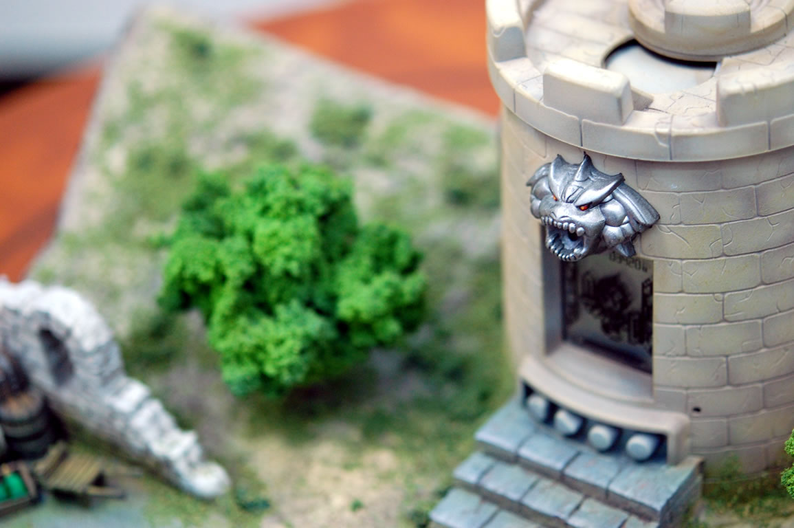 バンククエストは貯金箱なのでサイズもコンパクト、500円玉で5万円分貯めることができます。塔の形をしているので、中世のジオラマ風に楽しむこともできる。