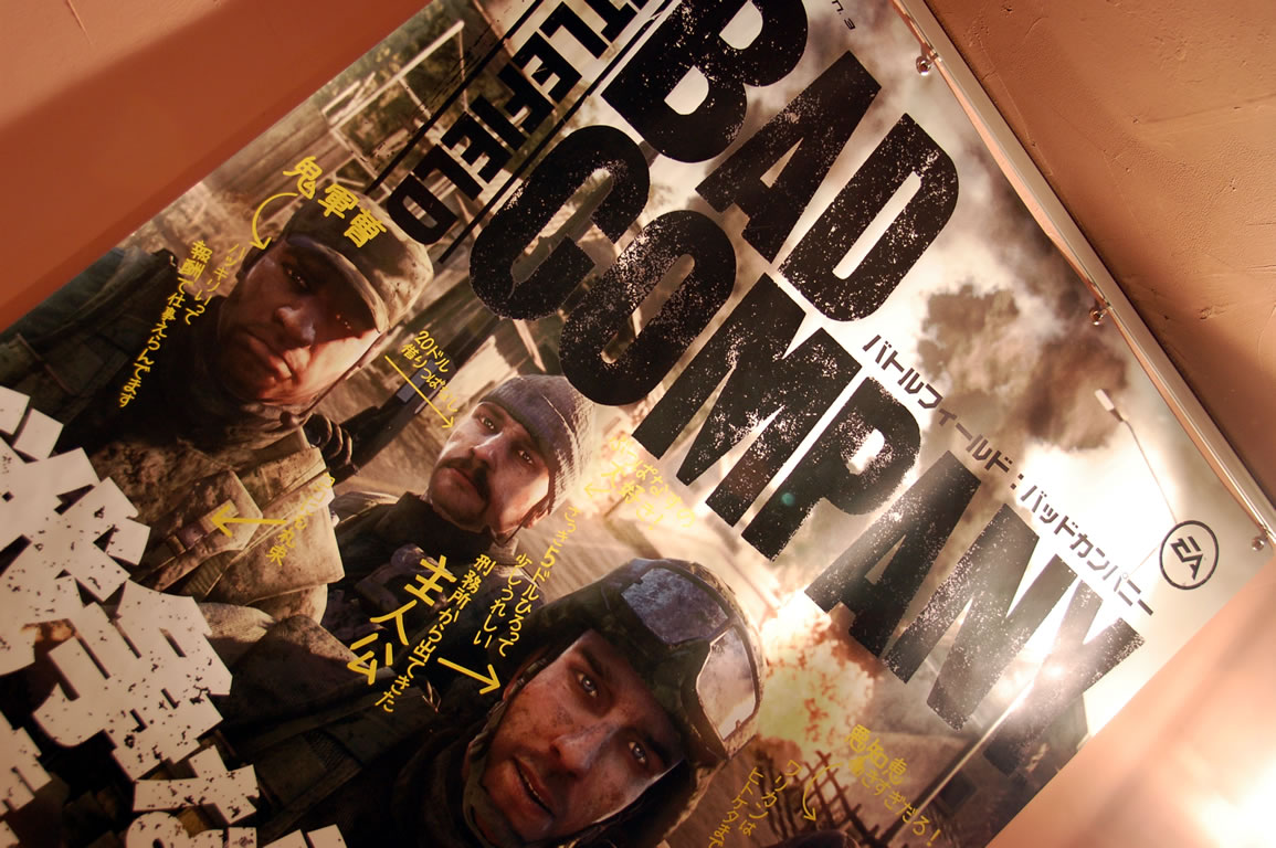 「バトルフィールド:バッドカンパニー」は4人組のユニットが戦地で戦闘を繰り返しながら金塊などの宝物を集めるというアクションゲーム。オンラインにも対応していて最大24人の同時プレイができるまさにPS3ならではの仕様。試遊台には、9月18日発売のPS3/Xbox
