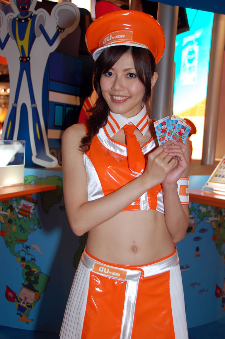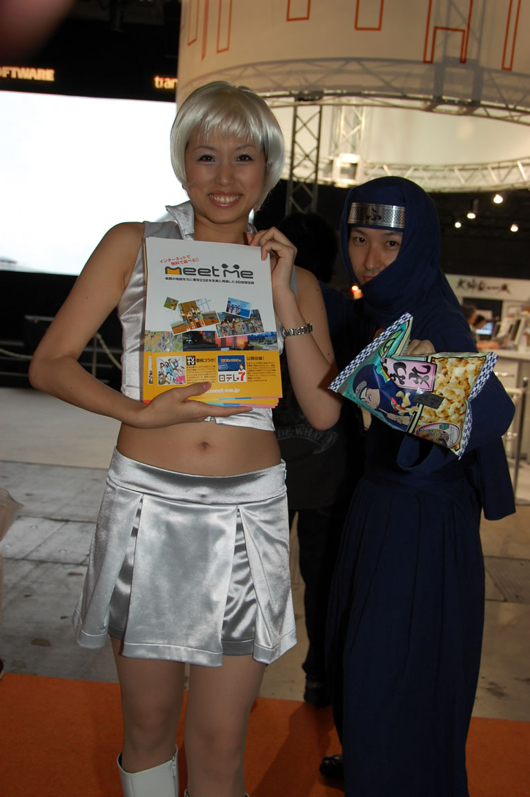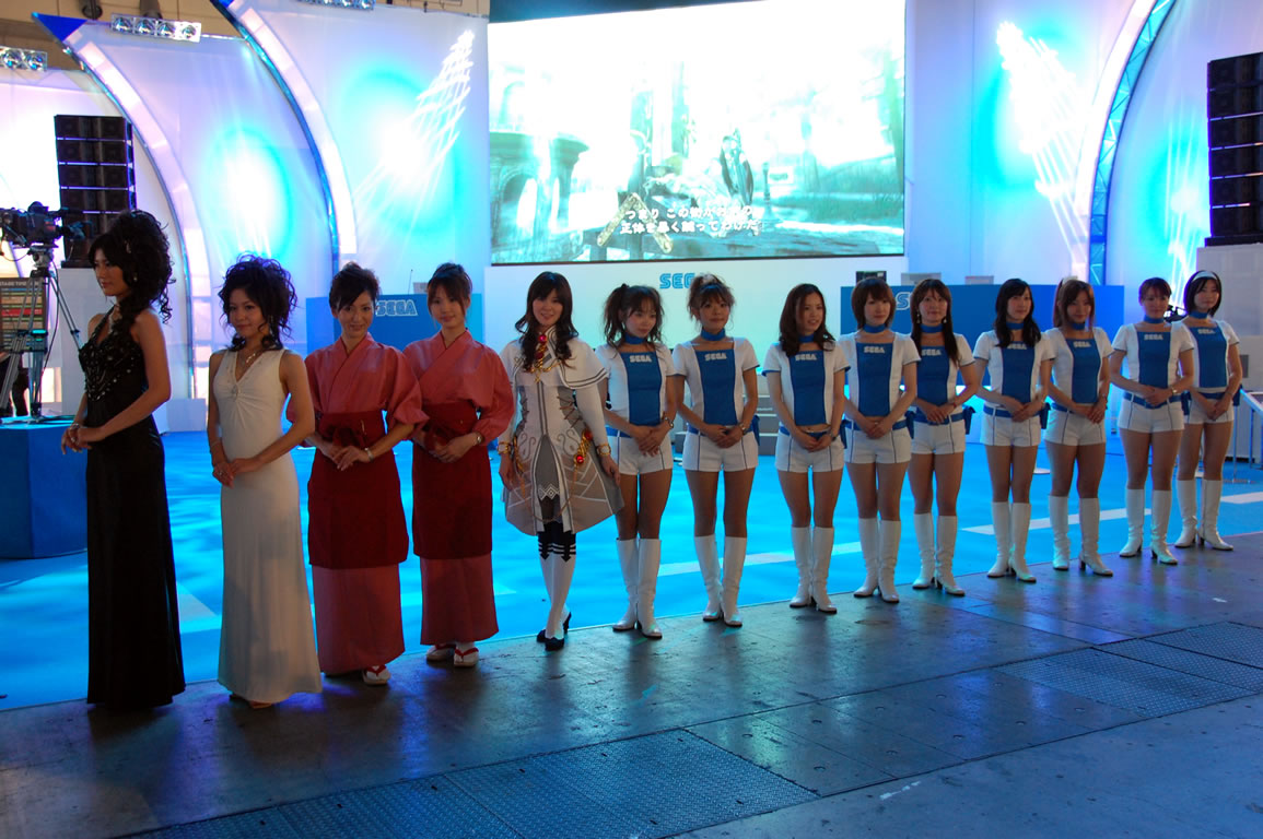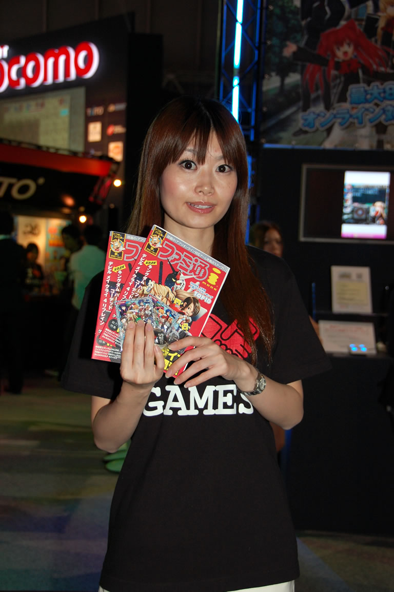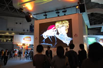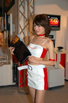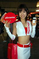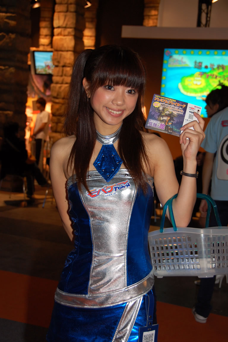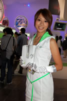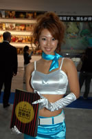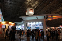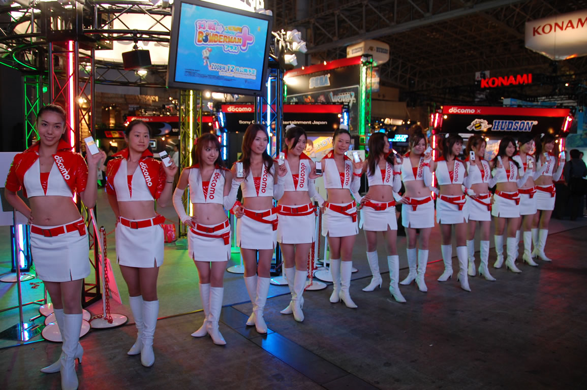 モバゲータウンが大きなブースを出していた。ソフトバンクの参加がなかったため、入れ替わりの形。ただケータイゲームは人気としてはいまいち。その分コンパニオンに力を入れる。
