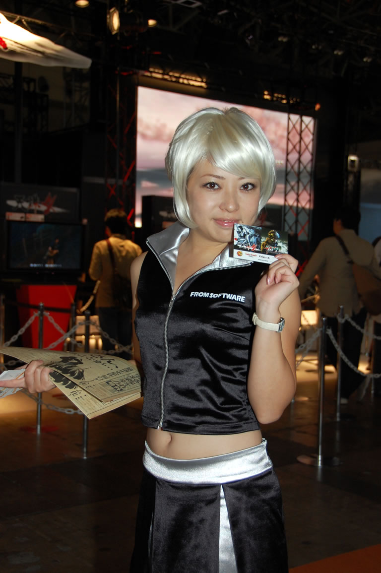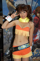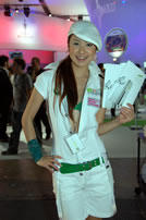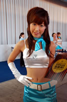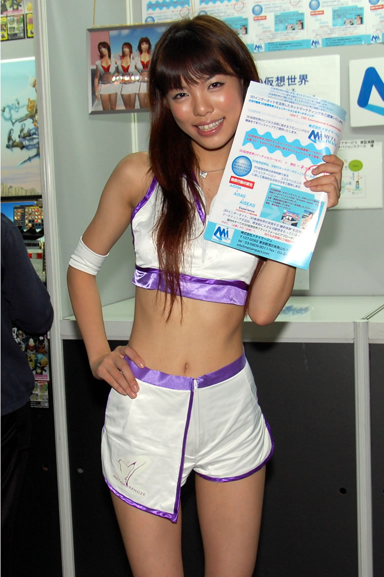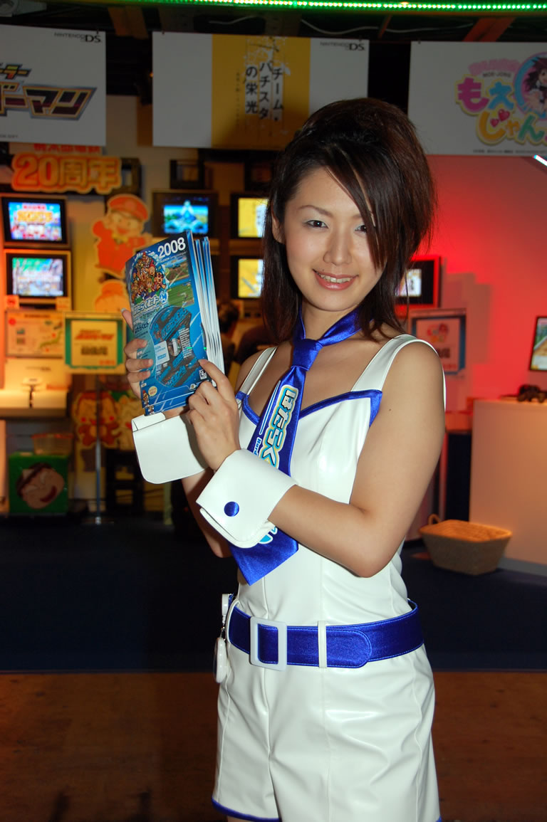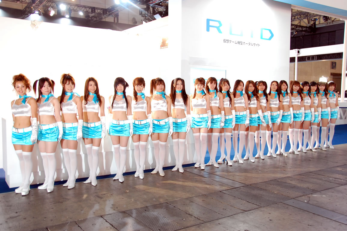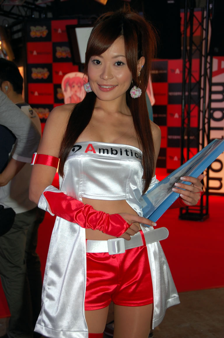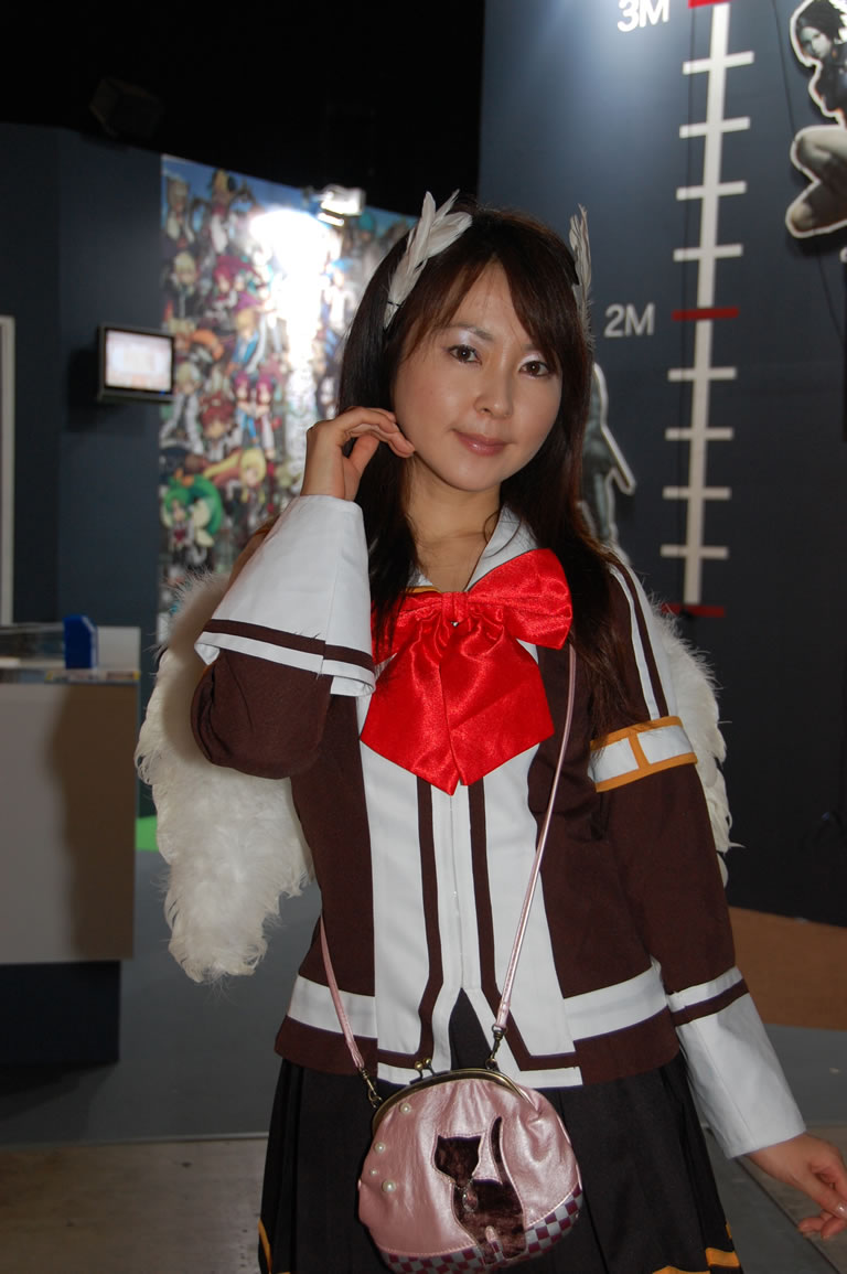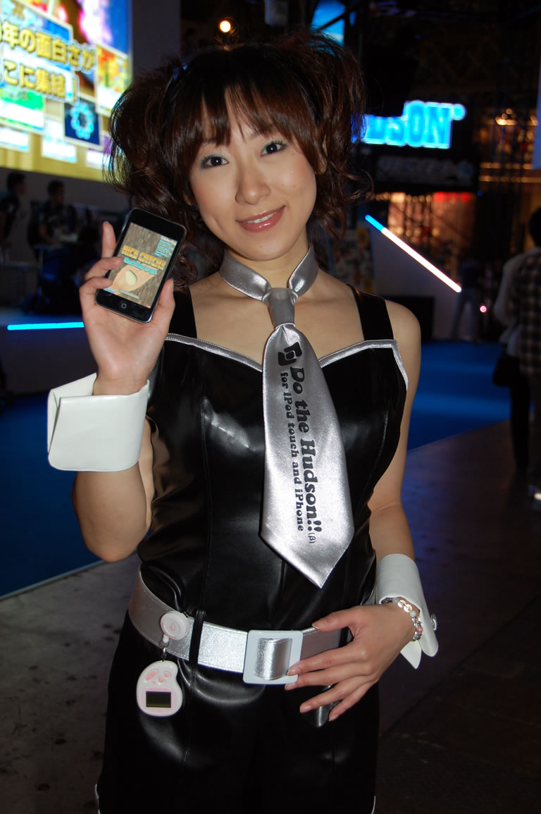 モバゲータウンが大きなブースを出していた。ソフトバンクの参加がなかったため、入れ替わりの形。ただケータイゲームは人気としてはいまいち。その分コンパニオンに力を入れる。