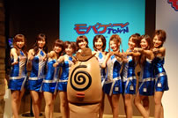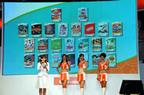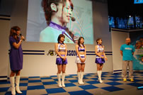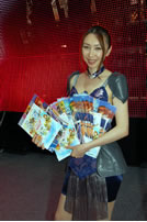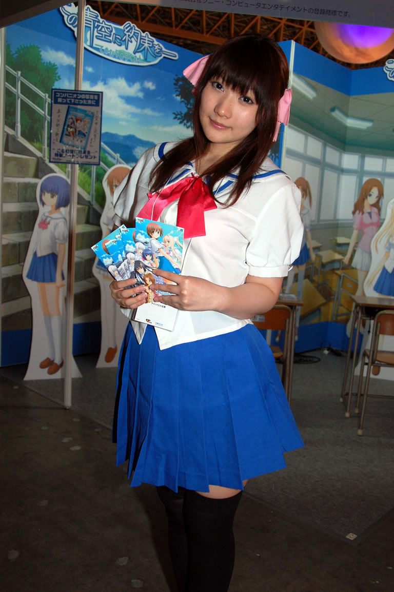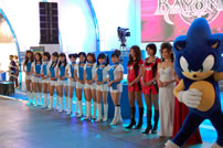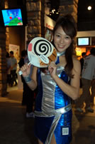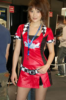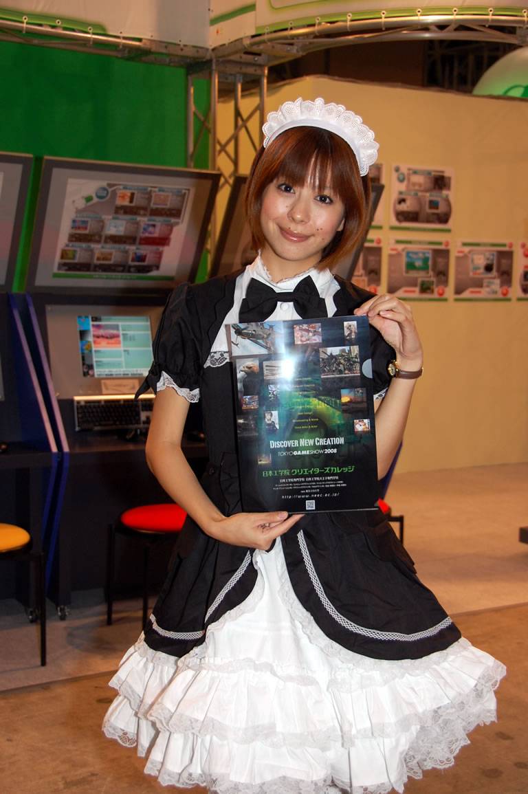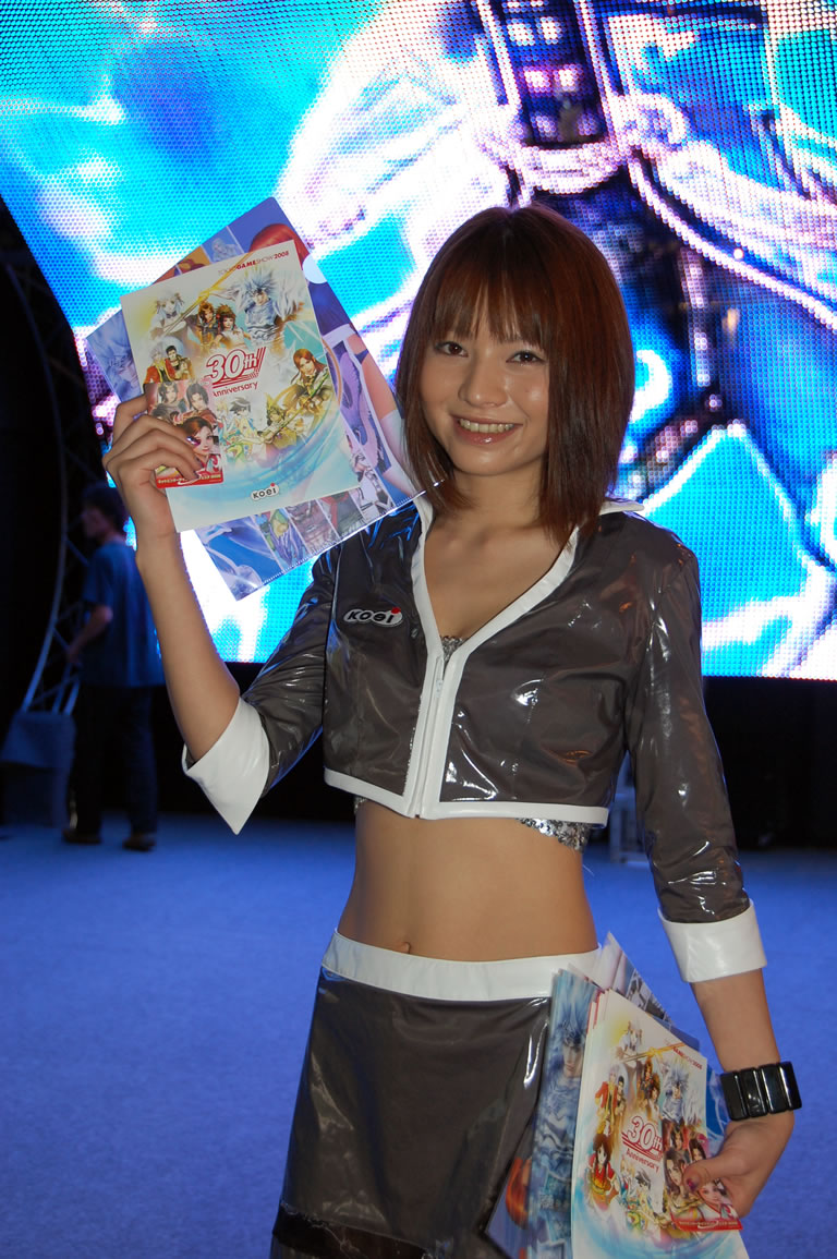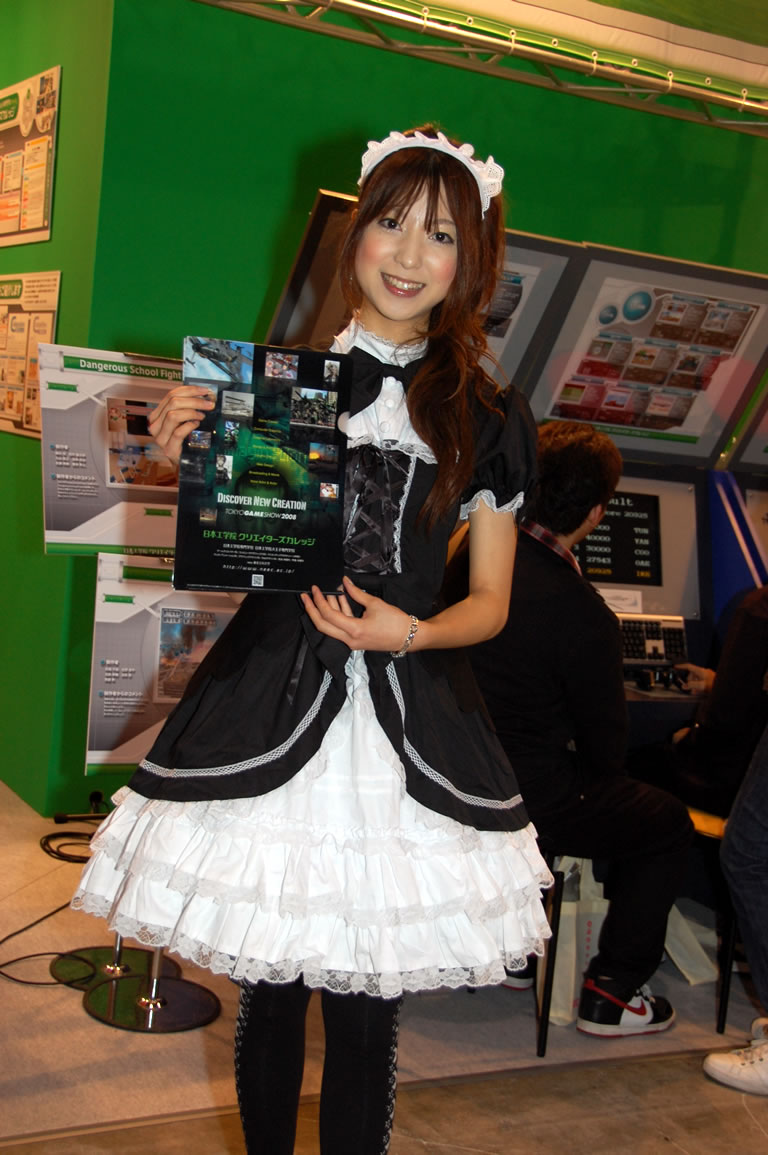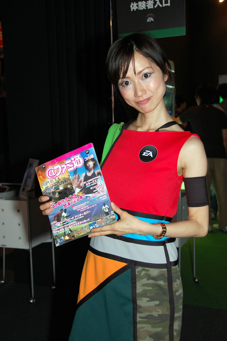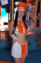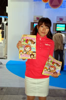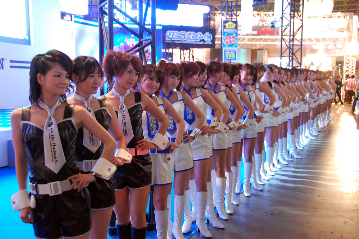 モバゲータウンが大きなブースを出していた。ソフトバンクの参加がなかったため、入れ替わりの形。ただケータイゲームは人気としてはいまいち。その分コンパニオンに力を入れる。
