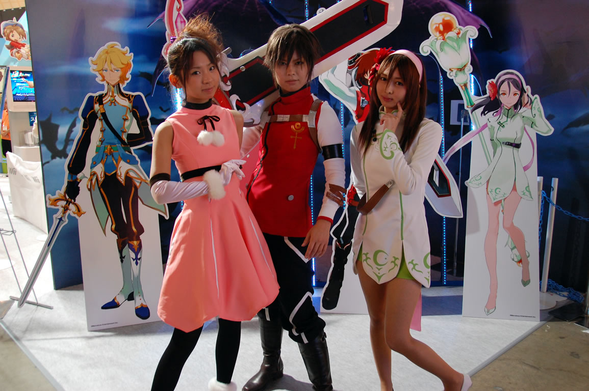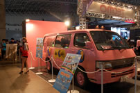 カメコに人気なテクモも昨年よりはおとなしめな衣装。「あいのり」で使われた初代ラブワゴンの展示などライトなゲームファン向けの試みが多い。混雑具合は少。