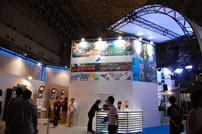 Wiiを中心としたクッキングゲームなど異色なタイトルが目立った。わかりやすく親子でプレイできる安心感がある。コンパニオンの衣装はメイドカフェのイベントでも人気の若妻風。混雑具合は少。