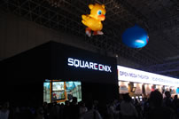 ファイナルファンタジー、ドラゴンクエストの新作が映像のみのためか、映像を見るために並ぶファンで長い行列ができている。混雑具合は多。